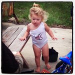 So… onto more fun stuff! Landri’s bad habits! She still has the ones I’ve written about before (tantrums, a passion for eating dog food, etc), but there are two new ones to add to the list. Landri has recently started pulling my pants down!!! Thank goodness I’ve always been at home when she’s done it, but I really have to think twice now about how loose fitting my shorts are! But probably worse is her new bad habit of sticking her hands down her pants when she has a poopy diaper (see post: https://livinwiththelehnhoffs.com/2014/04/04/a-day-in-the-life/). It’s happened a few times and is really horrible. I try to put her in onesies as much as possible right now until we get past this stage. I’m hoping she does it because she doesn’t like poop in her pants (another positive sign for potty training, right?), but who knows!!!