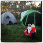 Yeah, did you catch that? Camping. With Todd-zilla and a 4 week old baby! Not to mention two 5 year old boys and Landri’s little B – Fri, Cami. Are we insane?! Dummbest question ever! And, yes, we are. I think it will take me three days to recover, and it’s not from too much booze! Talk about serious chaos! Surprisingly, Rex was the most behaved of all, LOL! Here are some pics of Landri and Cami having a blast!!! While it was super wild, it was also super fun!