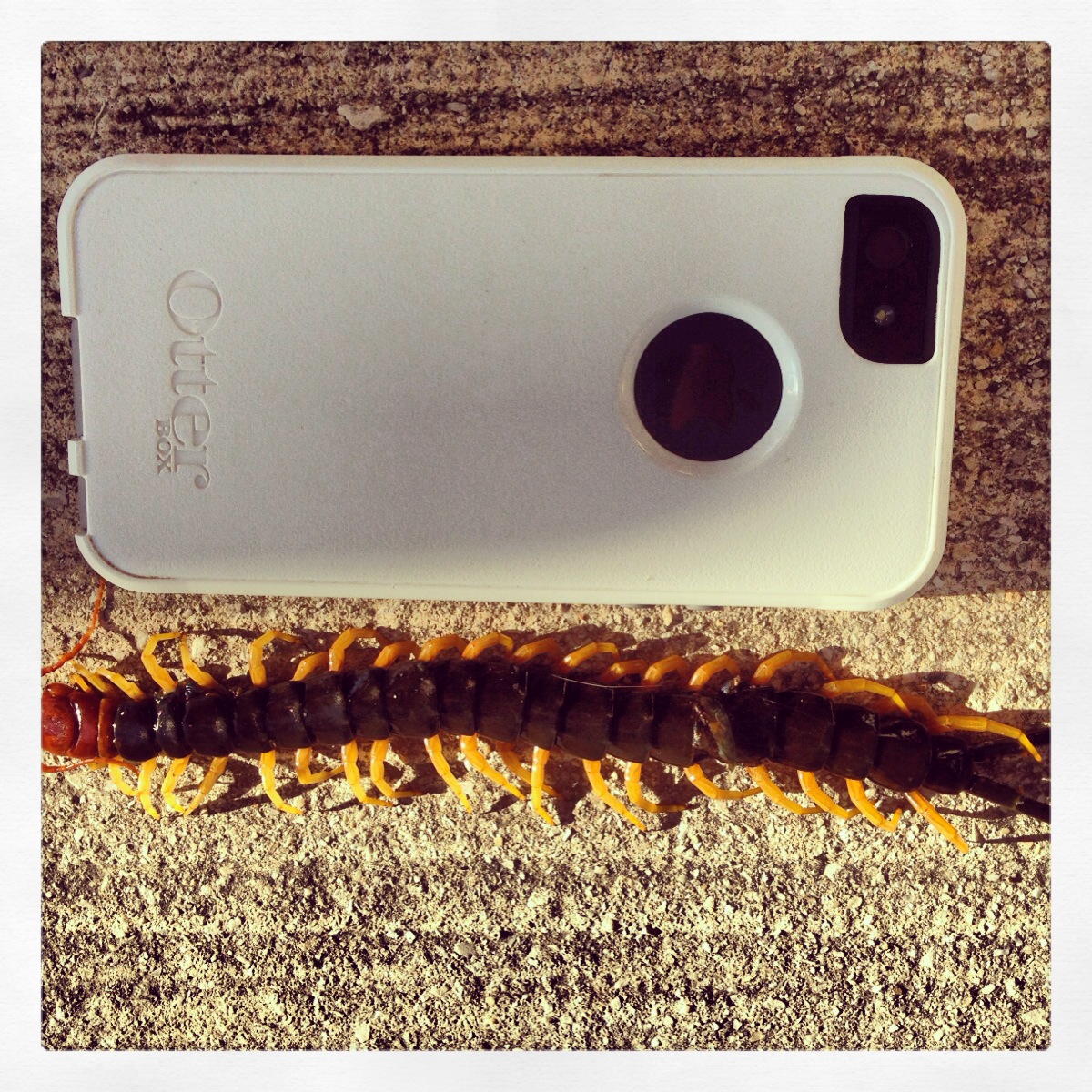 • She loves pointing out any bugs she sees by saying, “bug!” which out here are a lot! Speaking of creepy crawlies… it’s not just bats, scorpions, and tarantulas out here…check out the scary Redheaded Texas Centipede my neighbors found – SEVEN INCHES!!! (Yes, that’s an iPhone for comparison