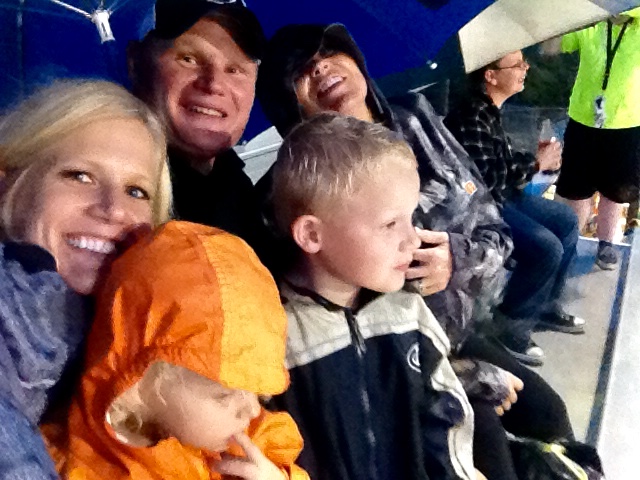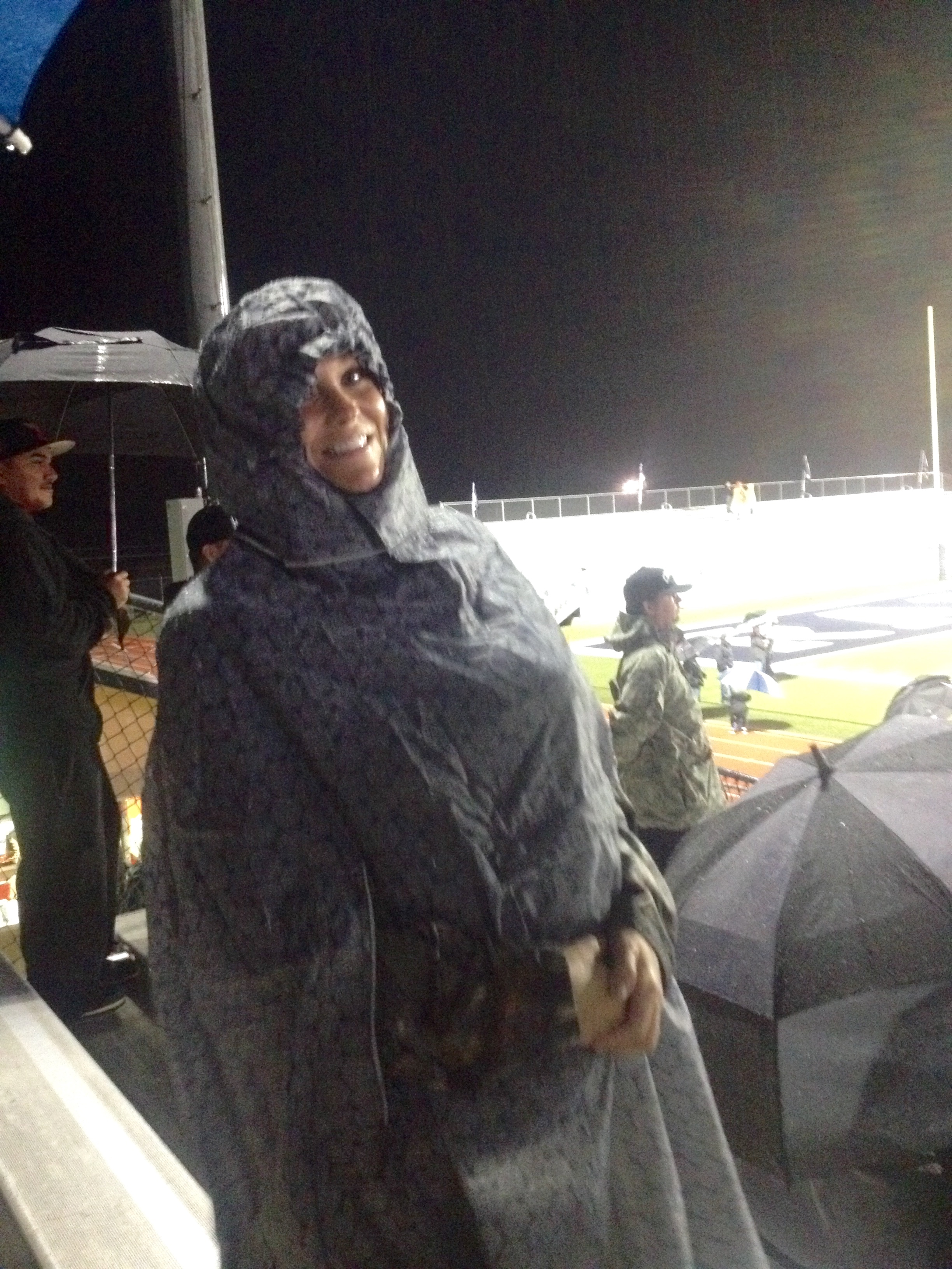 I’m relieved to say that the Steele Knights beat the Smithson Valley Rangers last night on Ranger turf, 31-20. While I am super proud of the players and coaches for coming back from a 20 point deficit in the first quarter, I am also proud that *I* survived the game, not only myself, but also Landri (age 2) and Rex (age 6 months) as it RAINED the ENTIRE game. Not a drizzle. A good, hard, actual rain. It’s really tough to complain about rain around here though as we’ve more or less been in a drought for years, but this was the third rain game in a row, and by far the worst!!! I’m glad we stuck it out though, and were able to watch the Knights take their first district game! I didn’t bring my big camera because of the rain and only have two pics (on right). And no, I don’t have a huge tumor, but rather a large baby strapped to my chest under my rain poncho, LOL!
