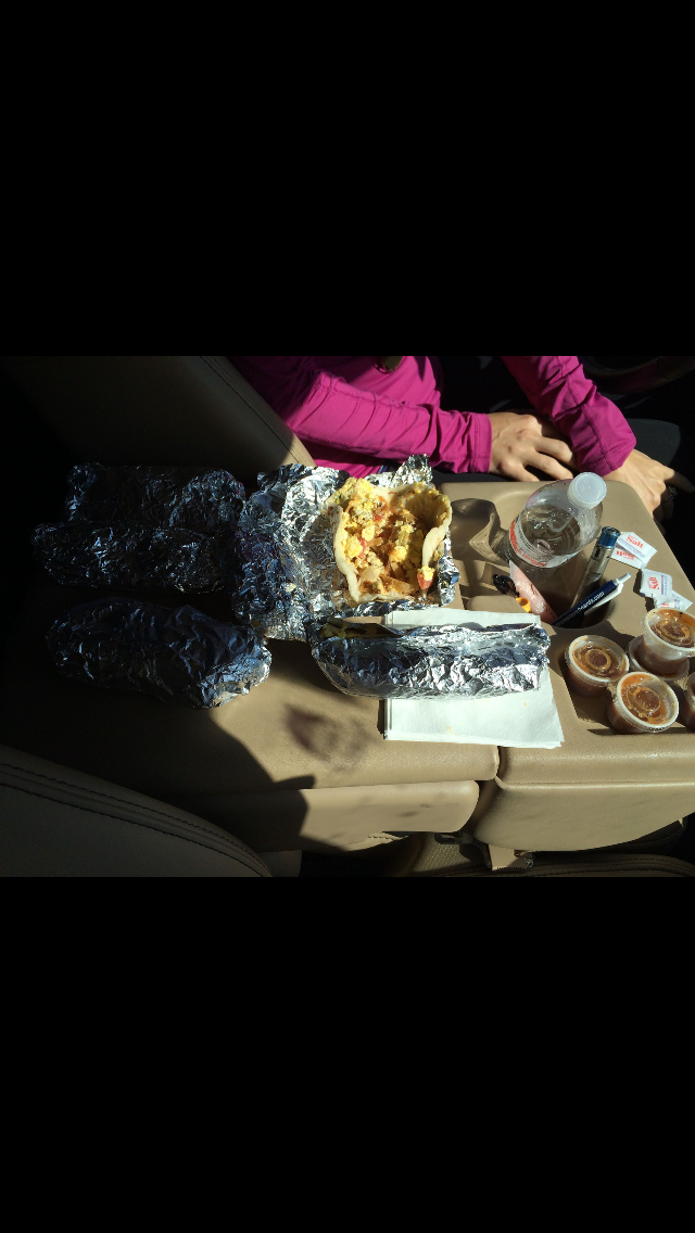 About halfway through the run our headaches wore off. We finished the race, and, fully recovered from our candy hangovers, decided to reward ourselves and replace our caloric deficits with breakfast tacos from Panchito’s – a favorite college haunt. Sure, eggs and cheese aren’t vegan, but we just ran 13 miles. And I’m not in town very often. And we already ate all that candy….I don’t regret a single bite of those tacos. Further rationalizing our food choices, we decided to wash down the breakfast tacos with Frosties from Wendy’s. No room left in our stomachs, we headed home to relieve Scott and hang with the kids. World Vegan Day was a bust and it was only noon.