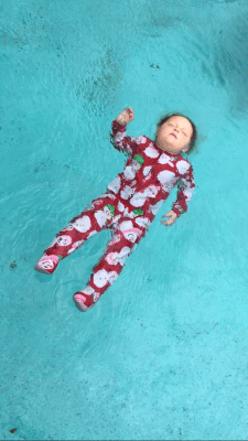 Landri floats, age 3.5 years