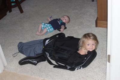 Landri hides in Daddy’s bag!